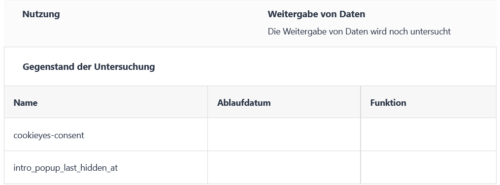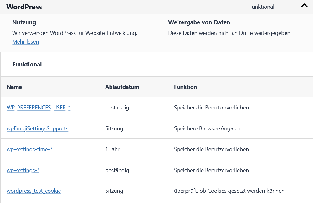 5.1 Technische oder funktionelle Cookies